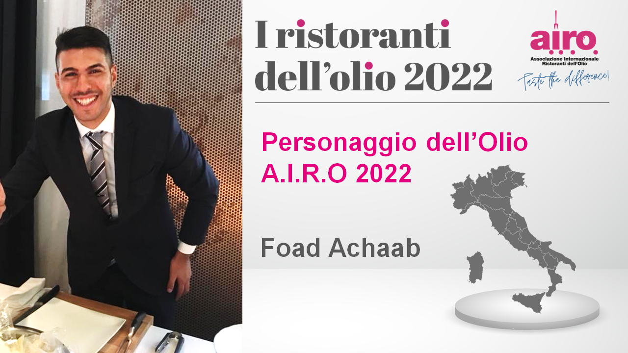 - Personaggio dell’Olio A.I.R.O. 2022 – Foad Achaab, maitre di Manetta Lab – Roseto degli Abruzzi (TE)