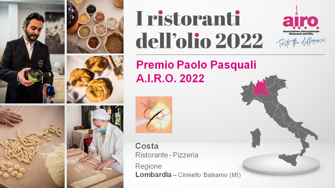 - Premio Paolo Pasquali A.I.R.O. 2022 – Ristorante Pizzeria Costa (di Claudio Rugna) – Cinisiello Balsamo (MI)