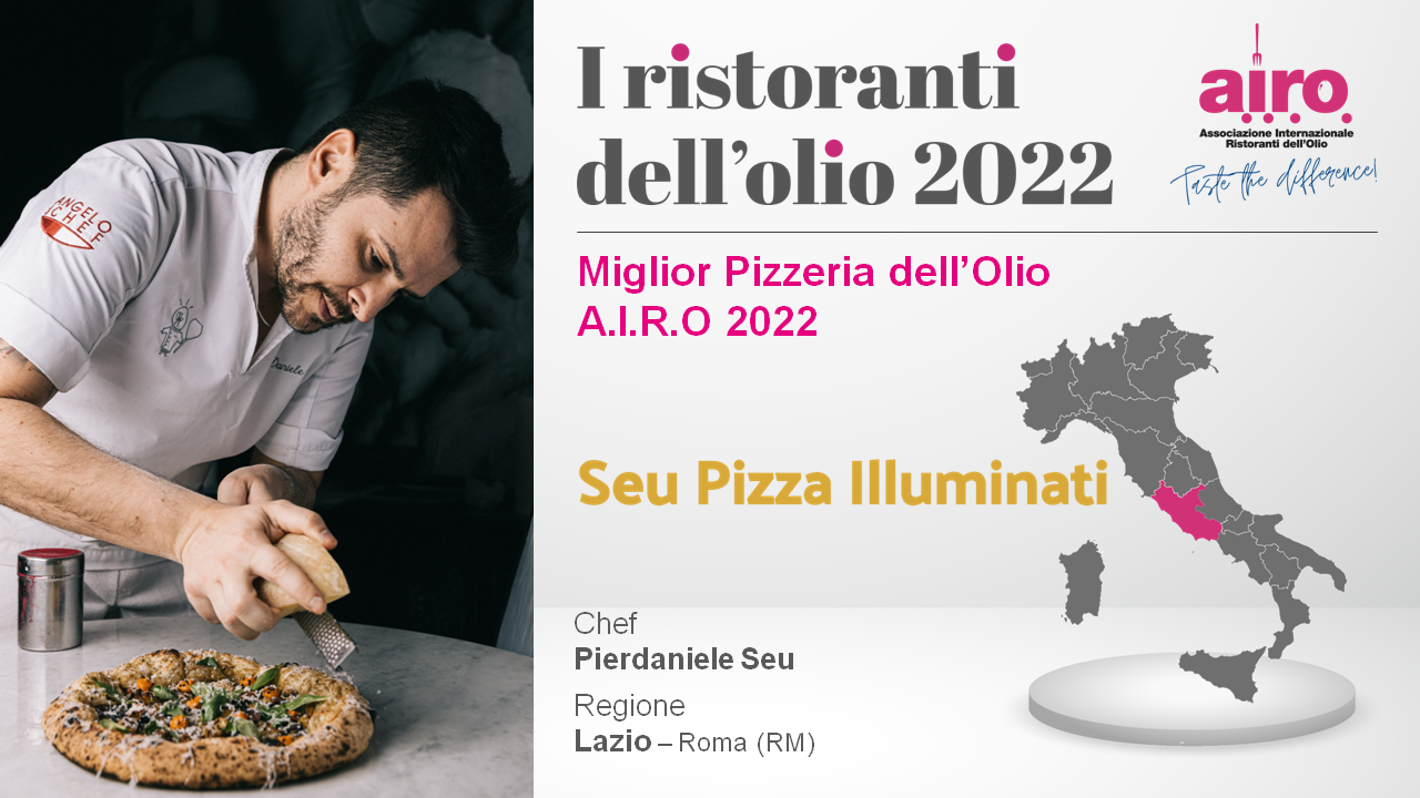 - Miglior Pizzeria dell’Olio A.I.R.O. 2022 – Seu Pizza Illuminati (Chef Pierdaniele Seu) – Roma (RM)