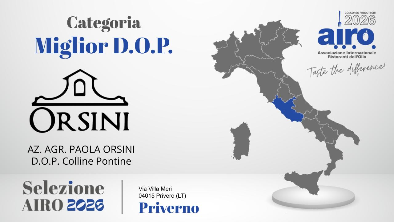 Miglior DOP: AZ. AGR. PAOLA ORSINI - DOP COLLINE PONTINE - LAZIO